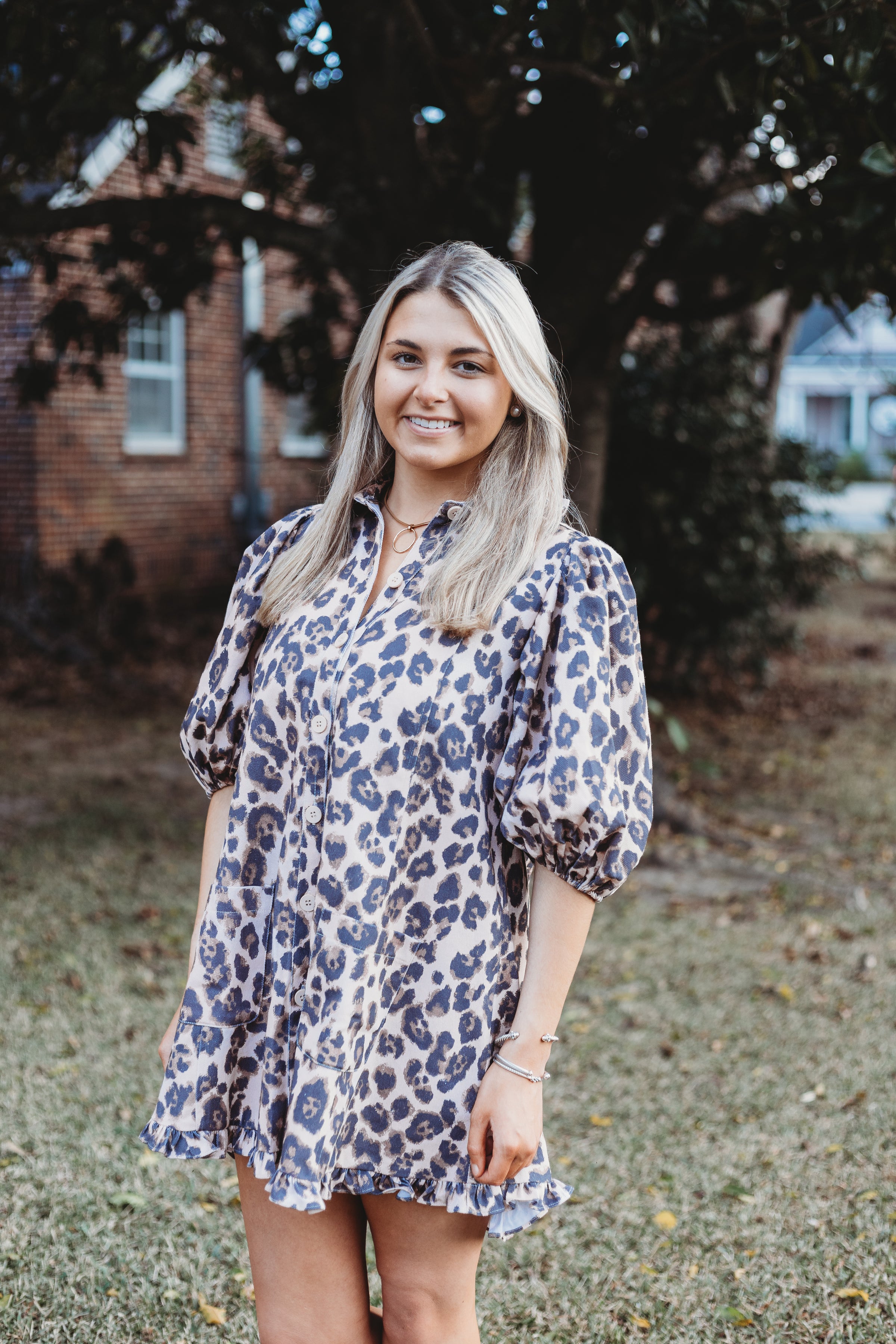 Make a statement with the Karlie Leopard Denim Puff Sleeve Pocket Ruffle Dress—where bold style meets everyday versatility. This eye-catching piece combines classic denim with a playful leopard print, while voluminous puff sleeves and charming ruffle details add dimension and personality. Functional pockets keep you practical without sacrificing fashion. Perfect for dressing up casual outings or standing out at social gatherings, this dress effortlessly transitions from day to night. Embrace your confident, fashion-forward side with a piece that celebrates individuality and timeless denim appeal.