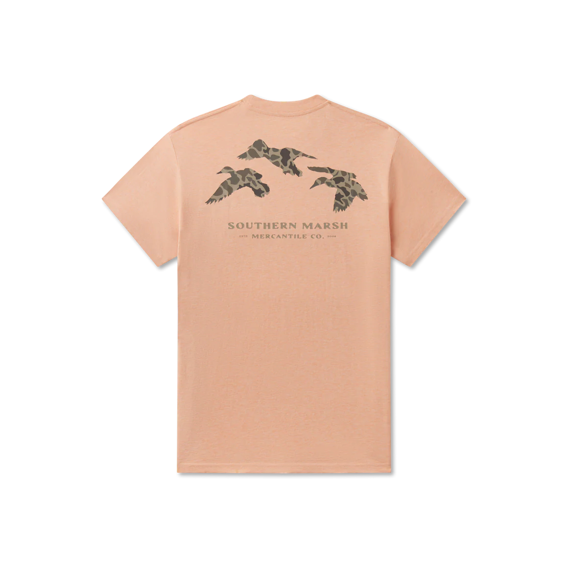Classic camouflage tee featuring a striking flying ducks graphic. Perfect for outdoor enthusiasts and nature lovers who appreciate timeless style with an adventurous edge. Soft, comfortable fabric ideal for everyday wear or weekend adventures. A versatile wardrobe staple that pairs effortlessly with jeans, shorts, or layering pieces.