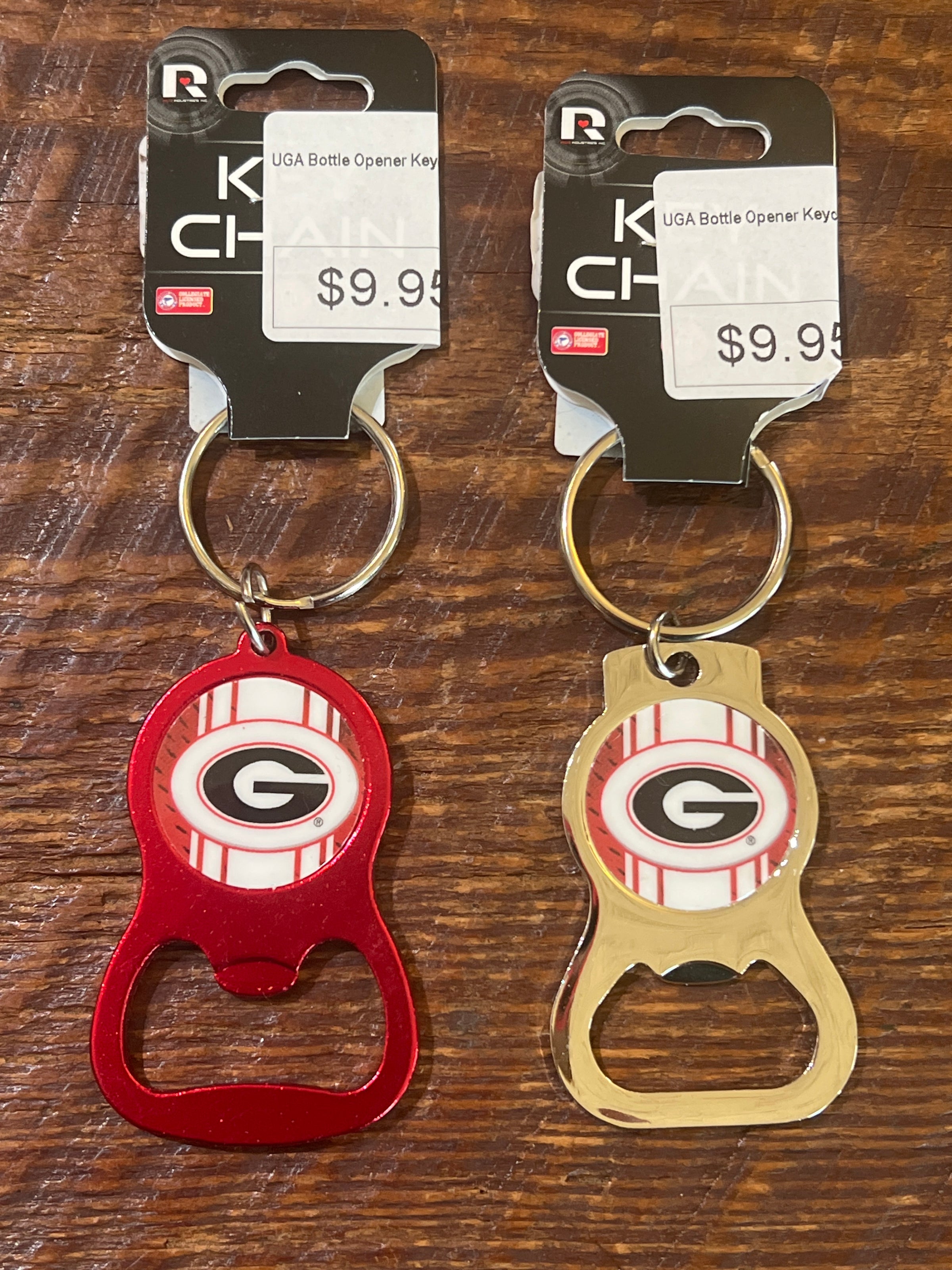 Show your Bulldog pride wherever you go with this UGA Bottle Opener Keychain. Compact and convenient, it combines team spirit with everyday utility—perfect for tailgates, game days, or casual outings. The durable design keeps your keys organized while displaying your Georgia Bulldogs loyalty. Whether you're a devoted fan or looking for the ultimate gift for one, this keychain delivers both function and fandom in one stylish accessory.