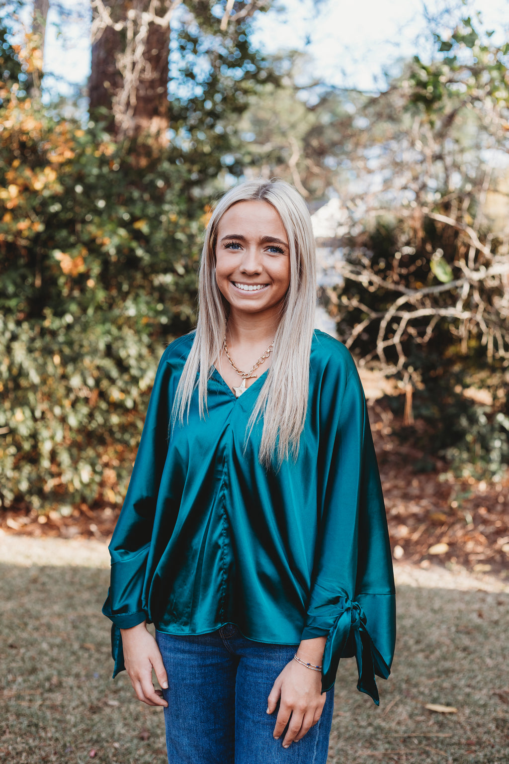 The Candace Satin Tie Blouse