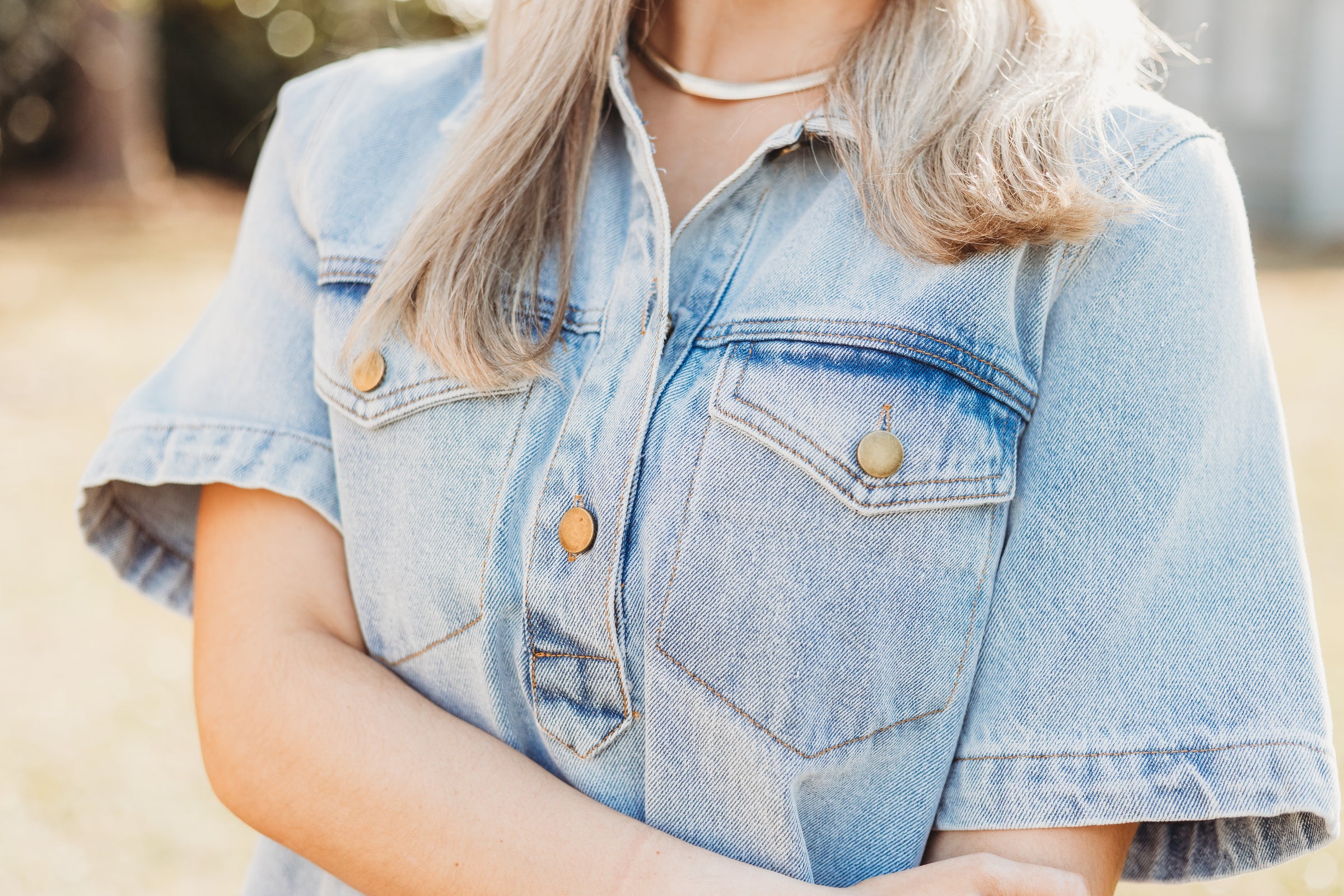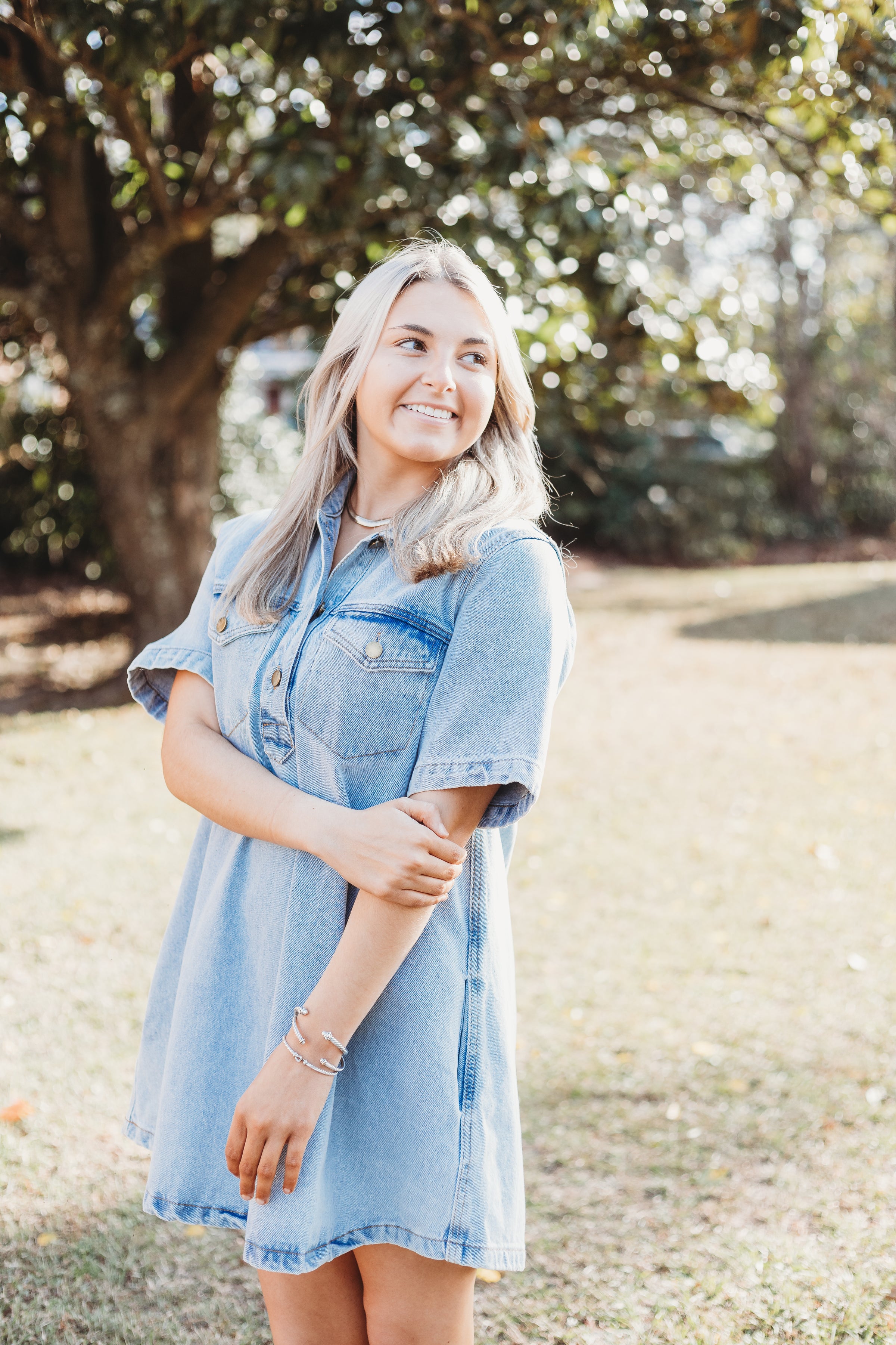 Experience effortless style and comfort with the Karlie Denim Swing Dress. Designed by Karlie, this dress features a classic denim material that is both trendy and durable. Perfect for any occasion, it's the perfect addition to your wardrobe!